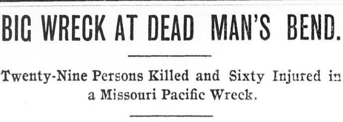 In the early hours of October 10, 1904, a sinister fate befell the second section of Missouri Pacific passenger train No. 30, bound from Wichita to St. Louis. As the train neared the infamous Dead Man’s Curve, a sharp bend three miles east of Warrensburg, it collided head-on with an extra freight train. The crash was catastrophic, leaving 28 dead and 60 injured.