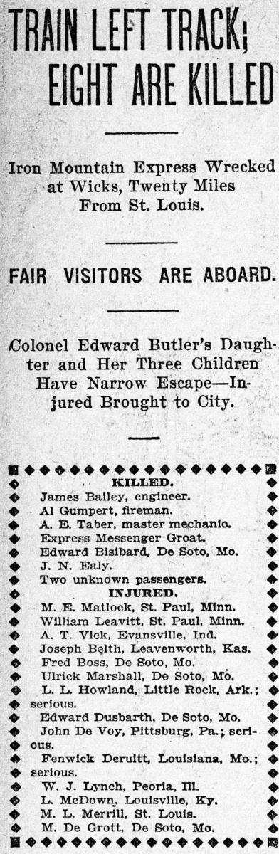 A petition filed on December 20th, 1904, in the Circuit Court of Johnson County Missouri initiated a lawsuit by Benjamin F. Aley against The Missouri Pacific Railway Company. The suit claimed damages for the negligent death of Benjamin’s brother and wife, Tilgham H. and Alice Aley, who died in the infamous St. Louis Fair train crash October 10, 1904. Benjamin sought Five Thousand dollars for his niece, Mary Aley. The case was subject to multiple dismissals. The Circuit Court did eventually award the plaintiffs the amount of the suit. The Defendant appealed to the Supreme Court, who affirmed the judgement.