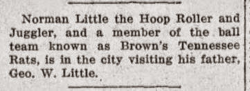 Norman Little the Hoop Roller and Juggler, and a member of the baseball team known as Brown’s Tennessee Rats, is in the city visiting his father, George W. Little. Oct. 10, 1914 Book cover :John Holway’s “Voices From the Great Black Baseball Leagues” Revised Addition.
