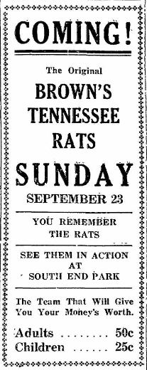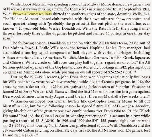 While the Negro National League was not formed until 1920, the Tennessee Rats did manage to find some top notch players, and at least one of them, John Donaldson, would go on to play with the All Nations, Kansas City Monarchs and several other teams. Another great player was Bill Drake.