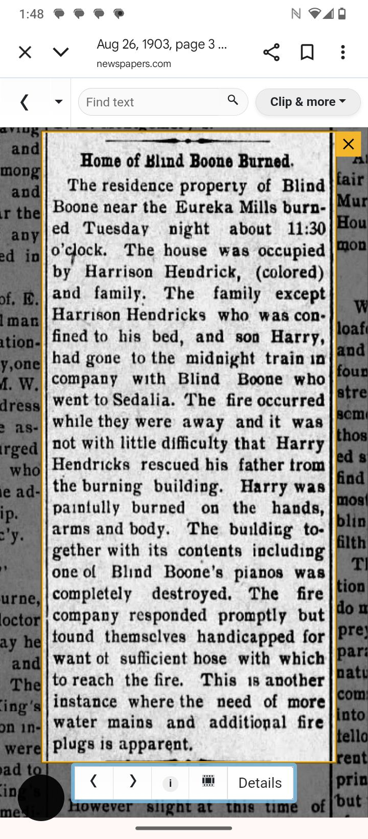 Just East of the site is now Grover Park. Once wooded with clear streams, people built small cabin homes, including the home Blind Boone once lived .