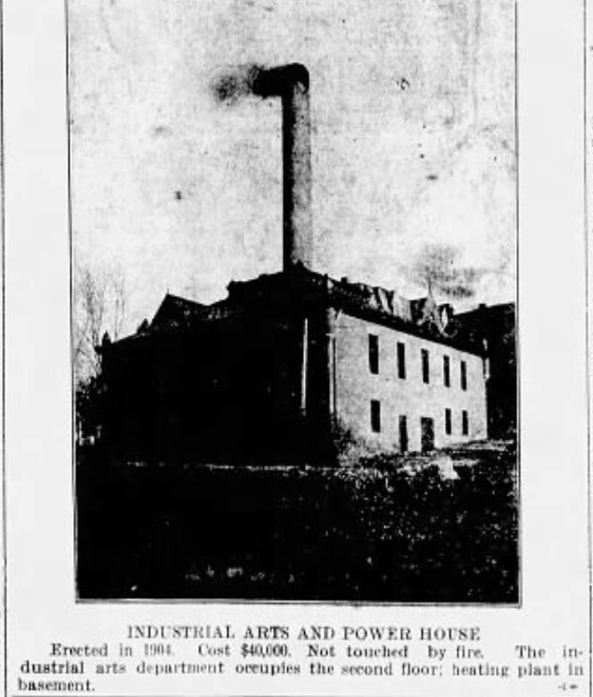 Dockery Gymnasium and Industrial Arts/Power House that survived the fire below.