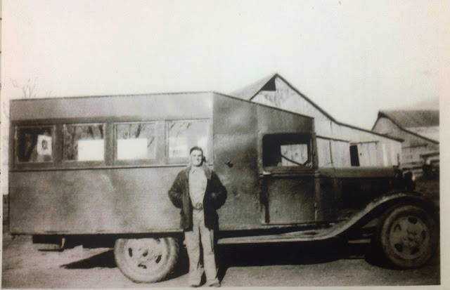 1938 Harold Marshall and School Bus built by Chilhowee Shop Class with Professor Orr and used by Chilhowee and Leeton Schools.