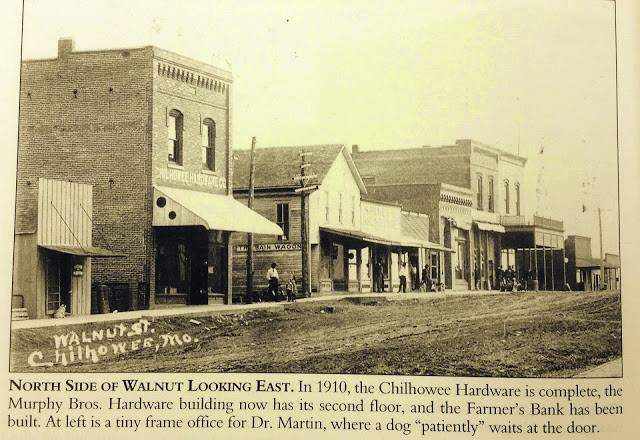 1908 view of Walnut St. Chilhowee, Mo.
