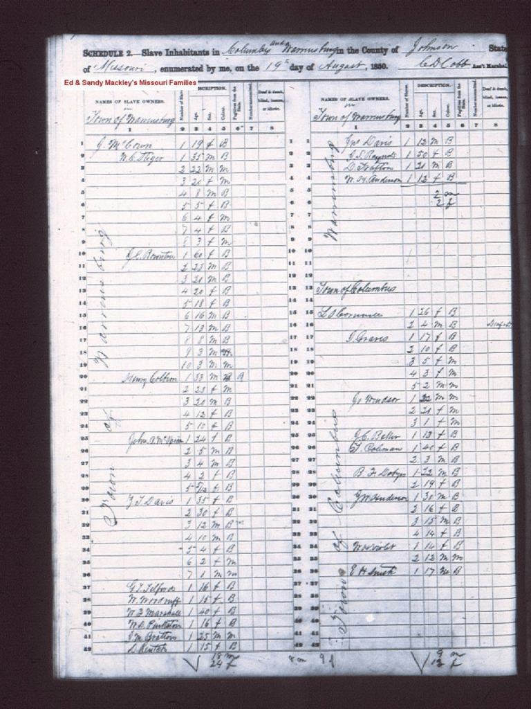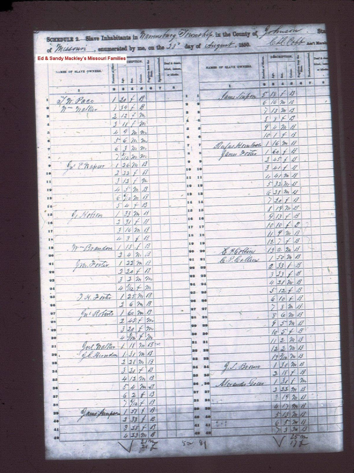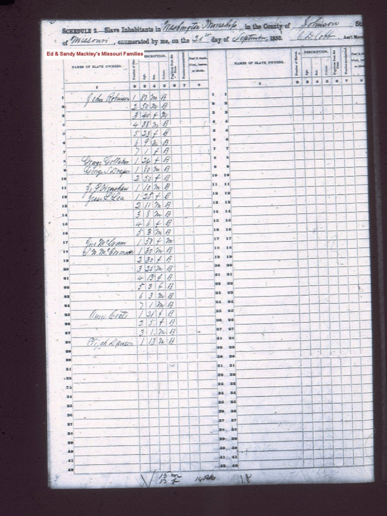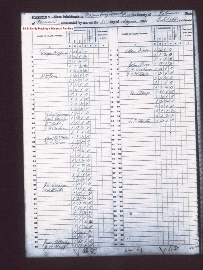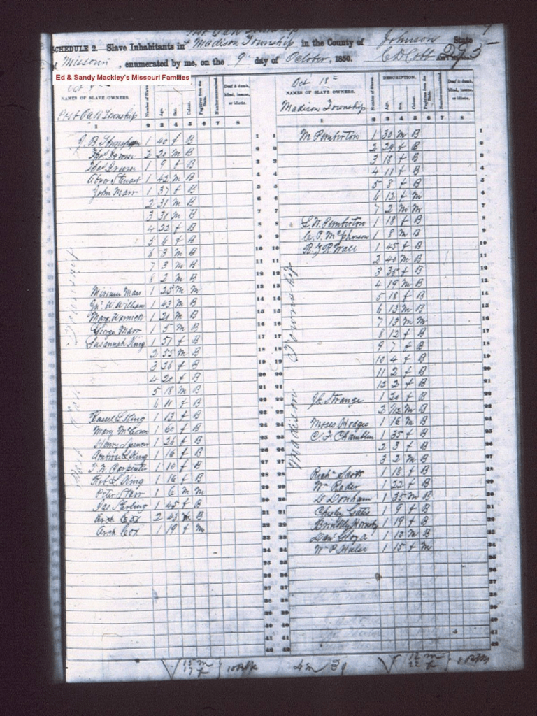 The 1860 U.S. Census sheds further light on the pervasiveness of slavery in Warrensburg and Johnson County, Missouri. Among those listed as slaveholders were prominent members of the community: