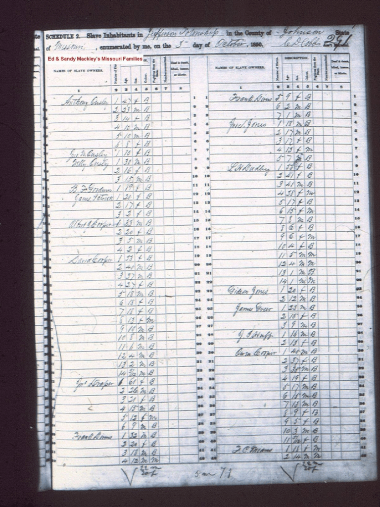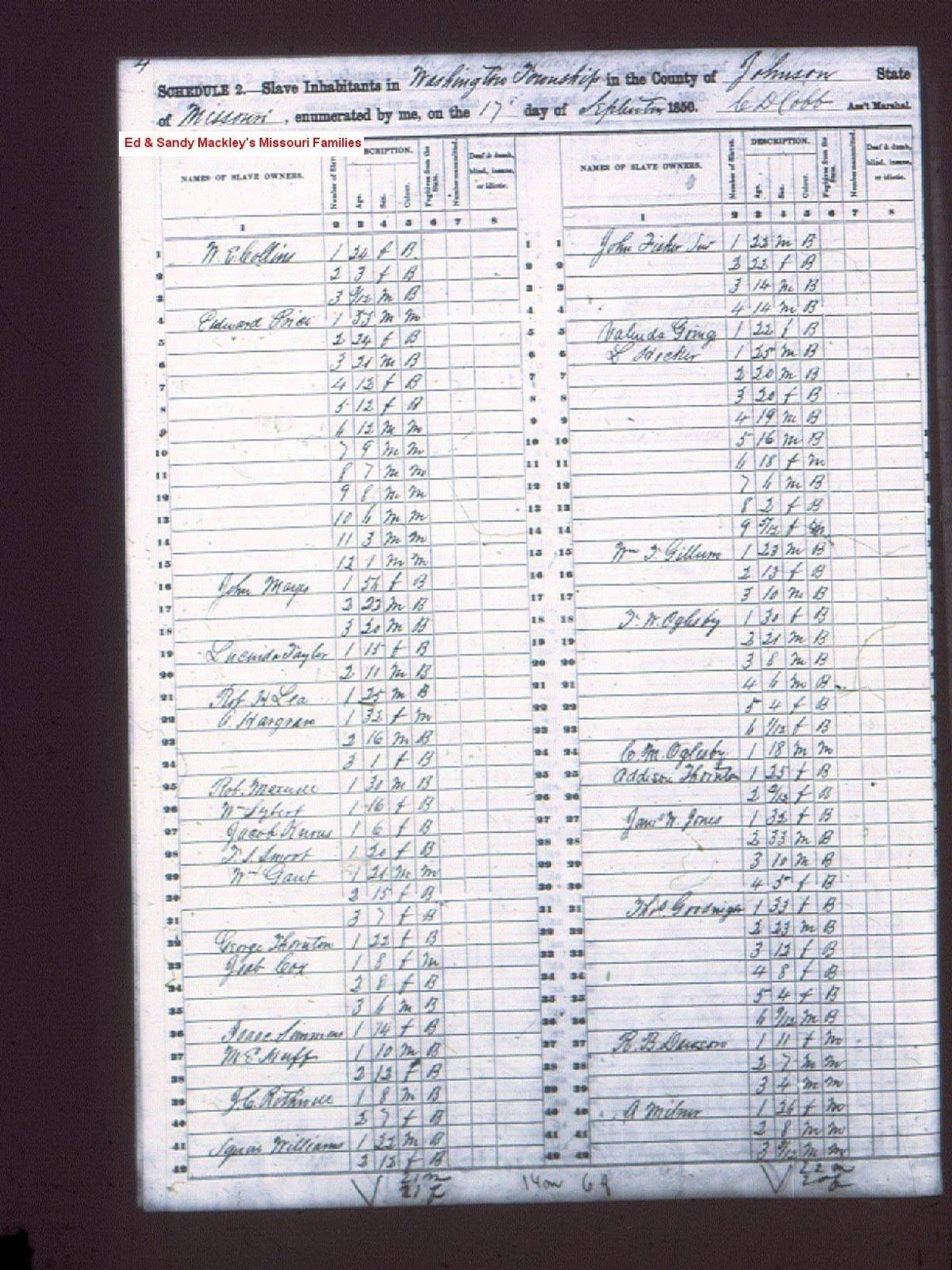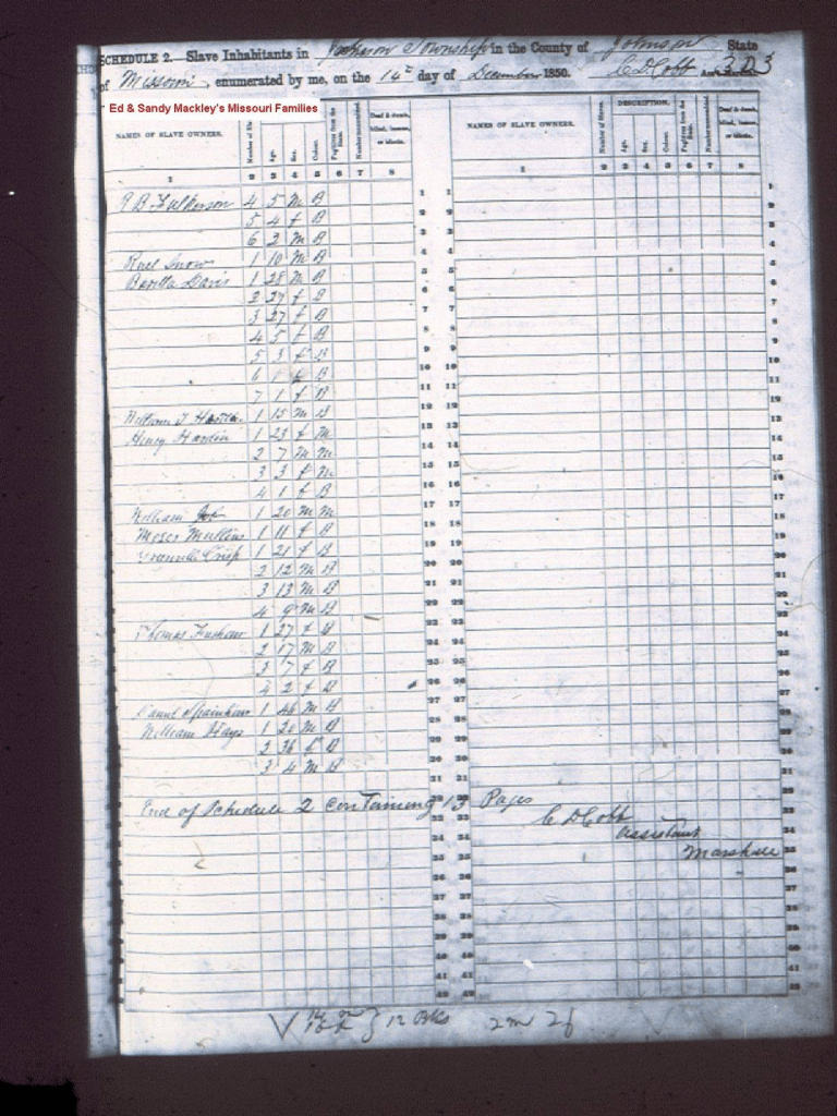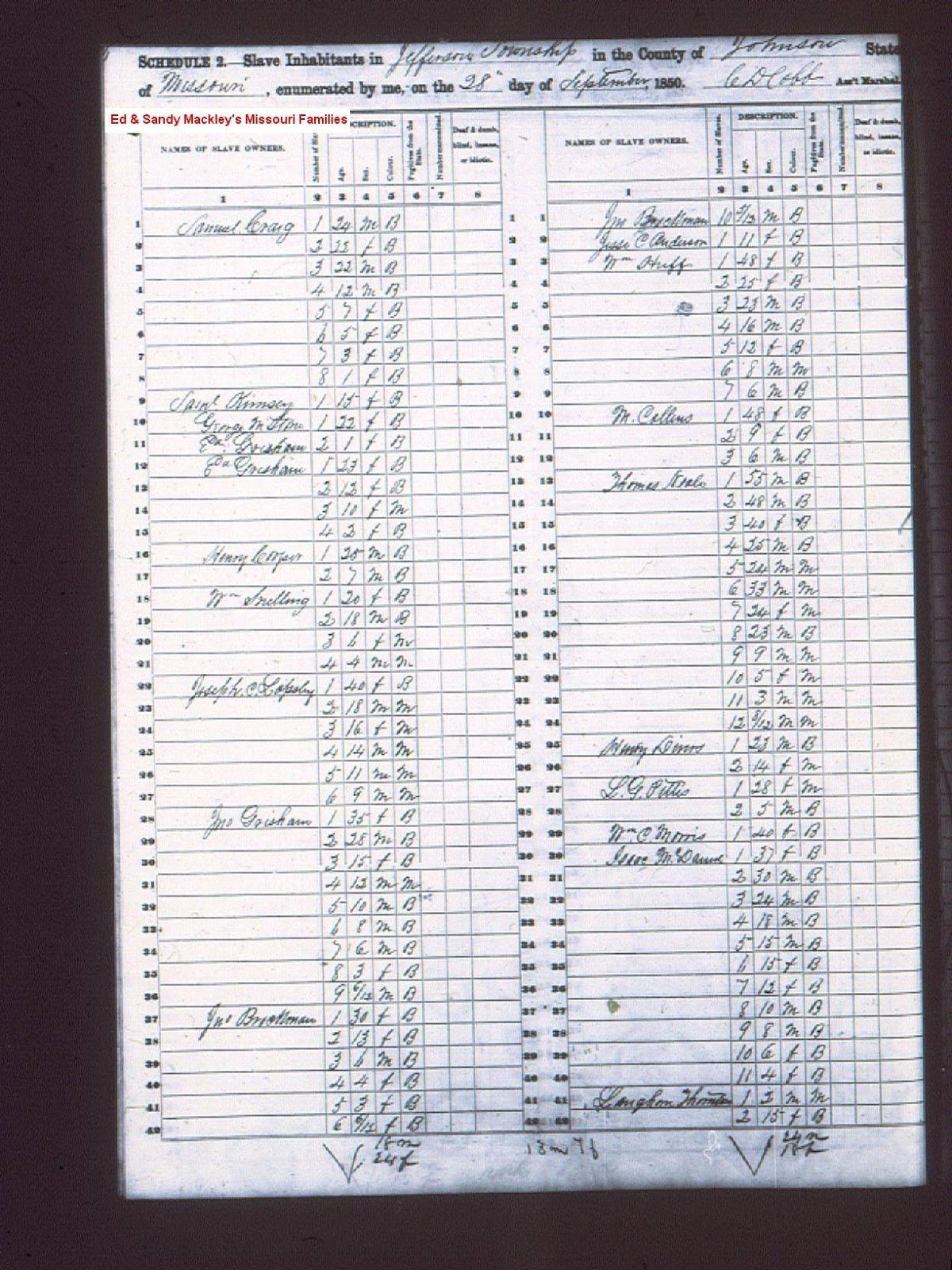 The 1860 U.S. Census sheds further light on the pervasiveness of slavery in Warrensburg and Johnson County, Missouri. Among those listed as slaveholders were prominent members of the community: