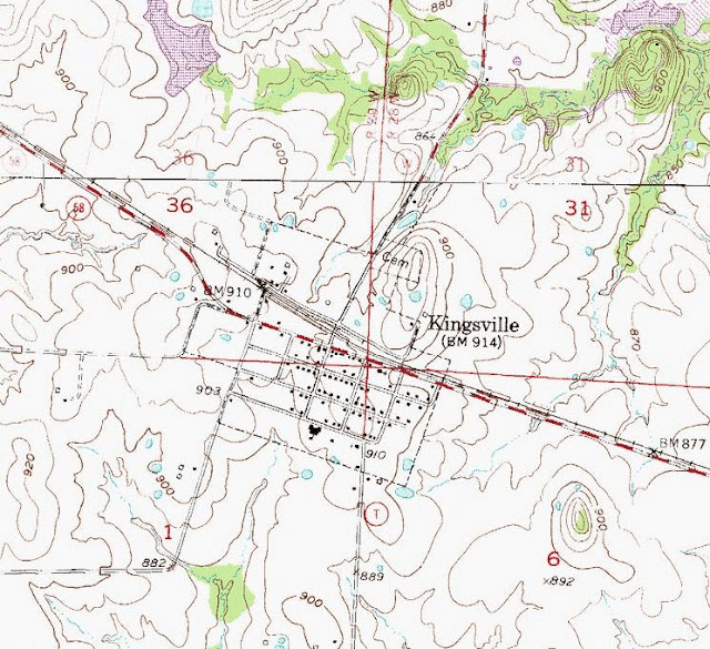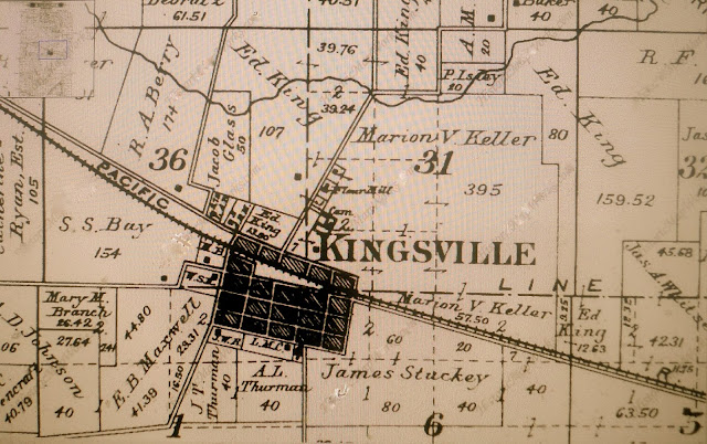 A town and post office on the Missouri Pacific Railroad in the eastern part of Kingsville Township.