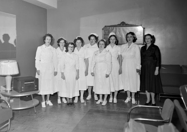 Below is a picture of the nursing staff at The Johnson County Memorial Hospital located on E. Market St. Also, from the Simmons Studio Collection.