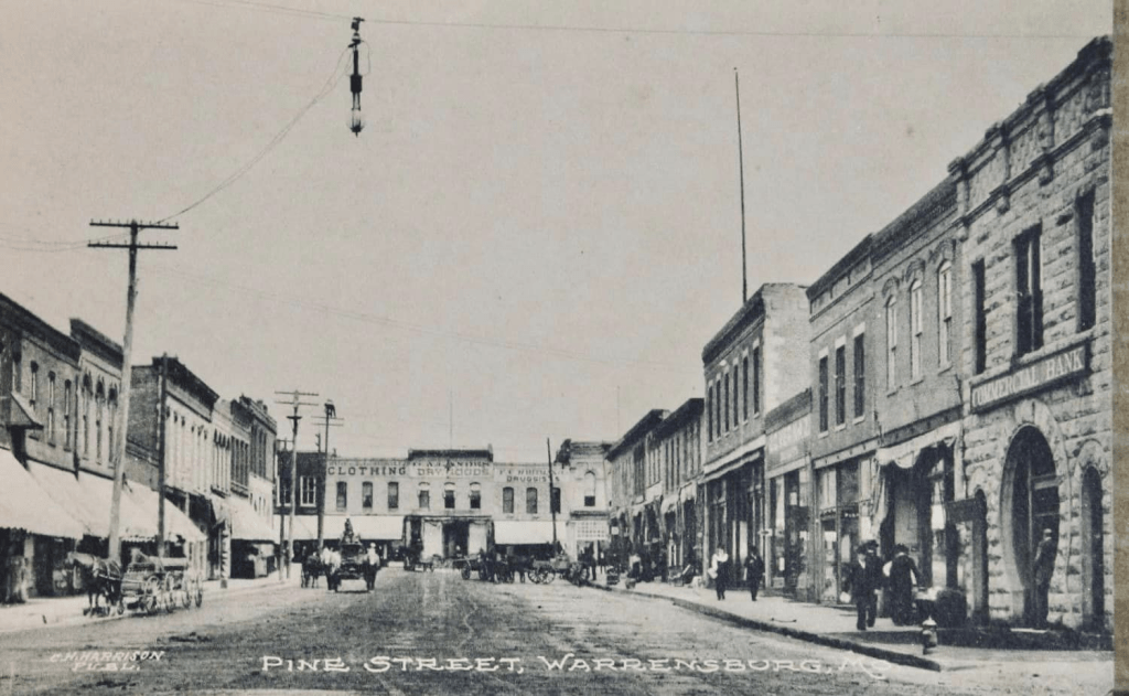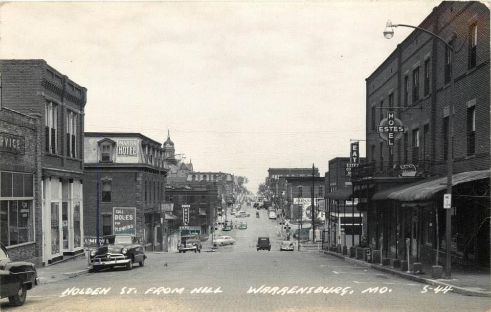 In 1861, due to the violence of the Civil War, county records were hidden, with some saying they were placed in a hollow log by Mrs. Mathias Houx and Mrs. “Aunt Polly” Hill. The records were returned after the war. During the Civil War, the railroad reached Warrensburg, and businesses moved away from Old Town. In 1866, the court ordered the construction of new public buildings for up to $75,000, a decision that caused concern among citizens in Holden, who felt burdened by post-war economic struggles. After a vote, the courthouse stayed in its current location, but in 1875, the court moved to New Town.